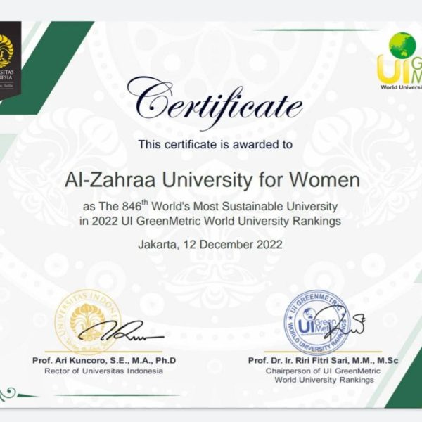 حققت جامعة الزهراء (ع) للبنات ترتيبا متقدما في تصنيف green metric العالمي للجامعات الخضراء لعام 2022، (UI Green Metric World ... Read more